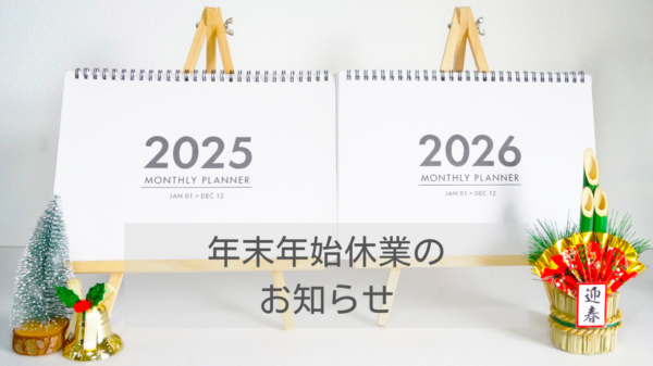 誠に勝手ながら、弊社は以下の期間、年末年始の休業とさせていただきます。